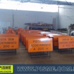 A sinalização de obras tem como característica a utilização dos sinais e elementos de sinalização vertical, horizontal, semafórica, de dispositivos e sinalizações auxiliares combinados de forma que: